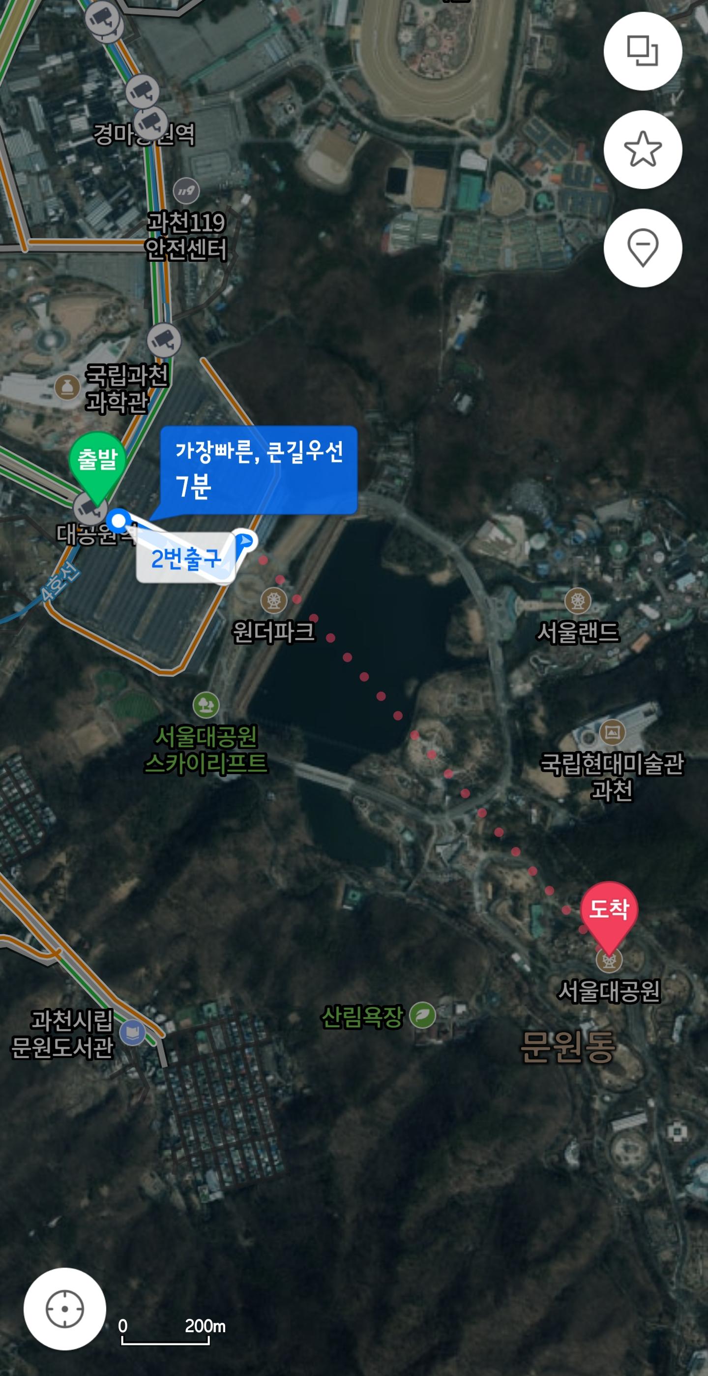 대공원역 1번출구 또는 2, 3번출구에서 내리시면 바로 공원 주차장이 나옵니다 주차장 지나면 대공원이구요 걸어서 10분 안걸립니다.