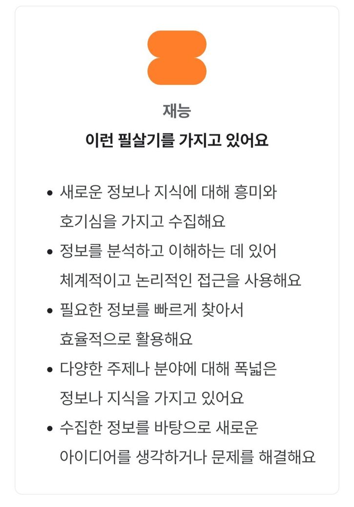 정보수집형이 나왔어요. 저의 강점을 활용해서