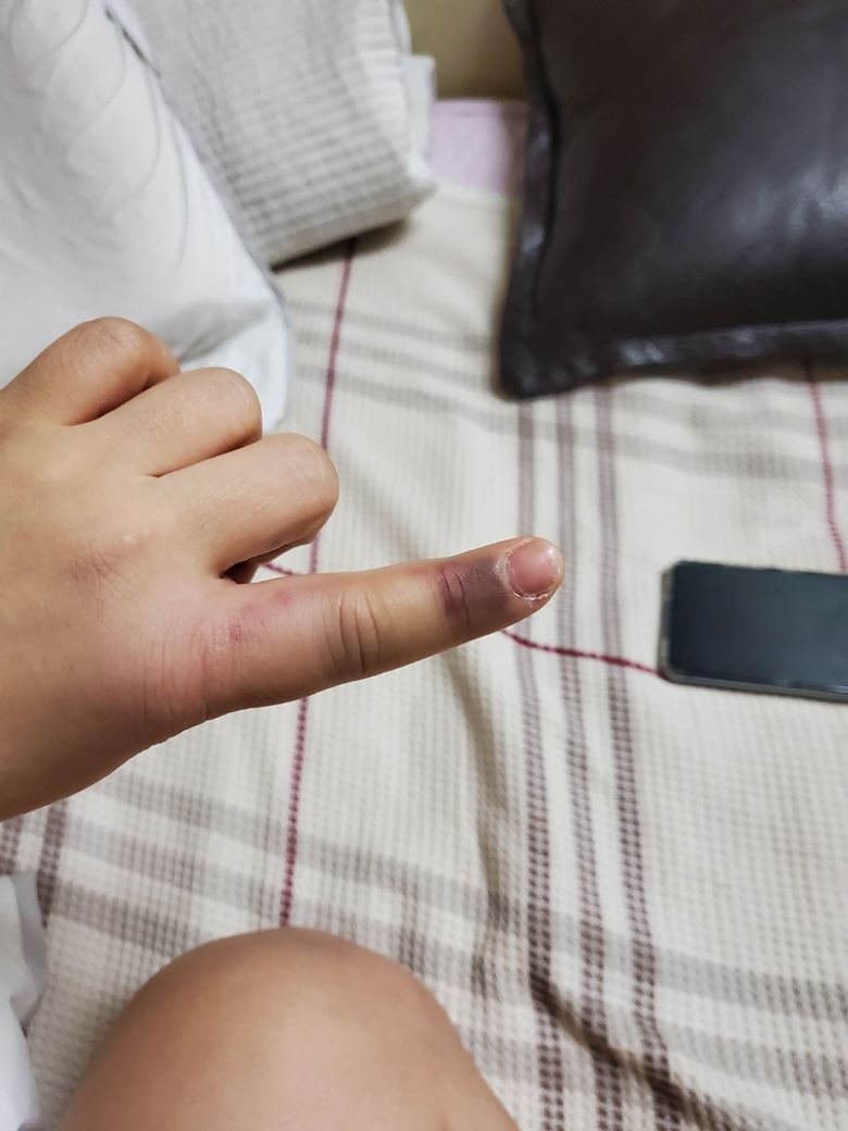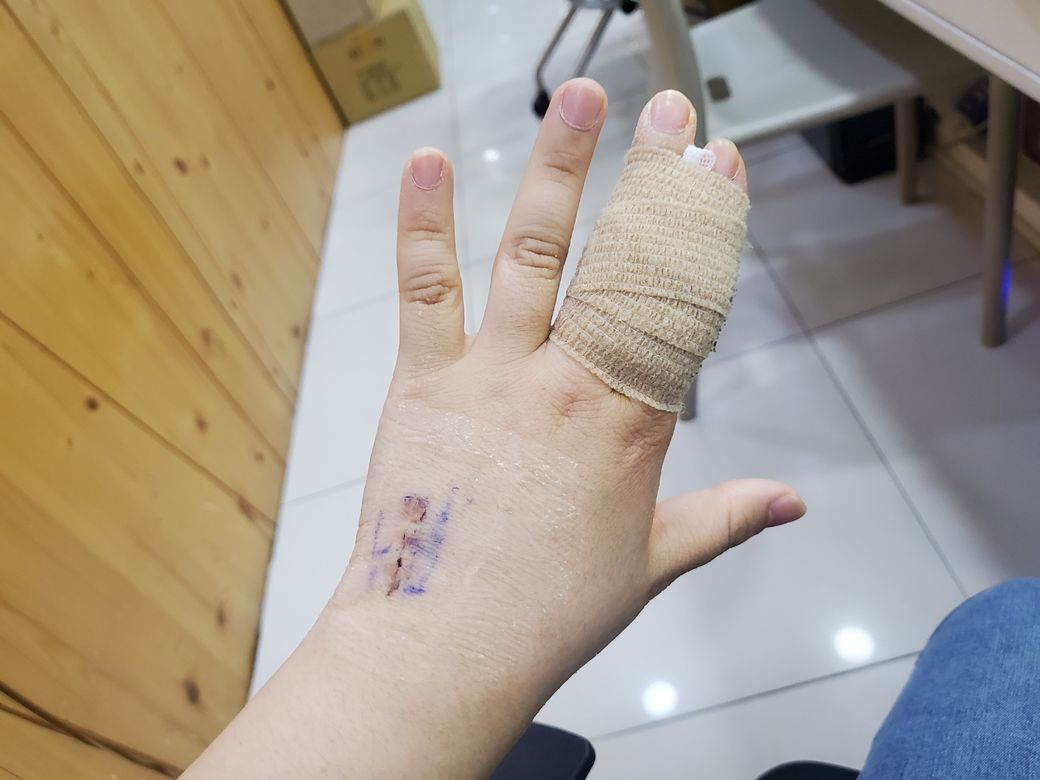 3/17 다친 후 일주일이 지나고 다친 왼손과 정상 오른손 비교 사진입니다.