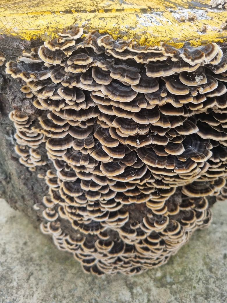 안녕하세요. 기쁜향고래73입니다.사진의 버섯은 구름을 닮았다고하여 운지버섯입니다. 산 속에서 자라는 운지 버섯은 말린 후 차를 끓여먹을 수 있는데 도시에서 난 것은 비추입니다.