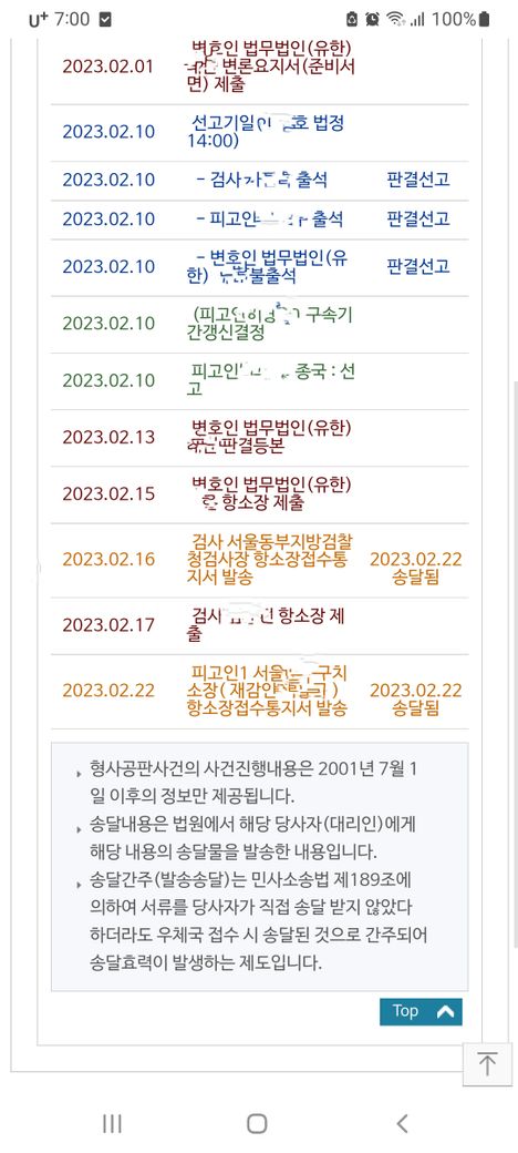 현재 항소장 접수통지서 발송 송달된 상황입니다