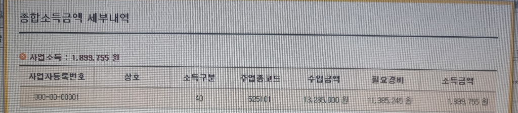 주업종코드는 525101이라고 금액만 나와있어 어디서 수입이 발생된것인지 도무지 알수가 없네요ㅜㅜ