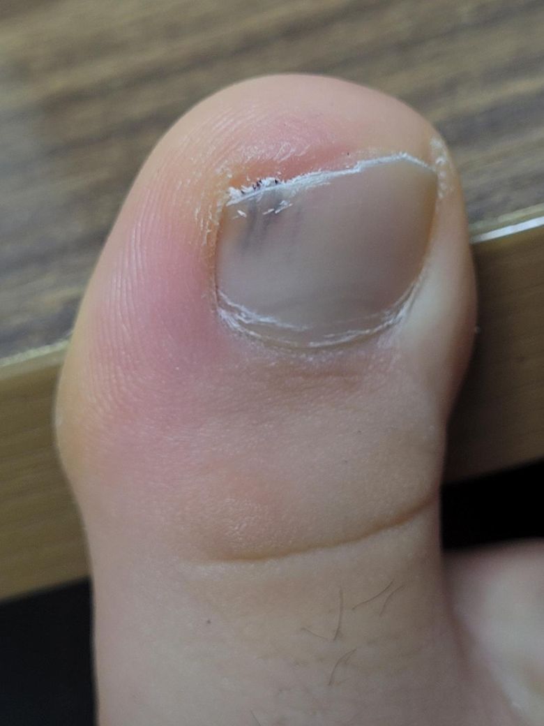 외관상의 소견만으로 흑색종 여부를 구체적이고 명확하게 감별하는 것은 가능하지 않습니다. 다만 일반적으로 흑색종이 발톱에 발생하였을 경우에는 발톱 결을 따라 세로로 끝까지 이어진 선 형태로 보이게 됩니다. 사진의 소견을 통해서 흑색종을 강력하게 의심하거나 할만한 소견이라고 판단할 근거는 없습니다. 다만 앞서 언급하였듯 외관적인 소견만으로 정확하게 파악하는 것은 가능하지 않기 때문에 우려스럽다면 구체적으로 진료 및 조직검사 등을 받아보는 것이 도움이 될 수도 있겠습니다.
