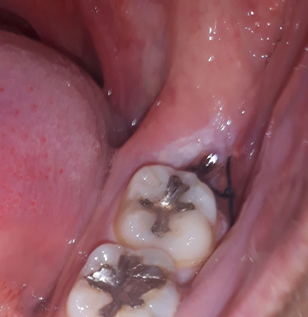 사랑니를 발치한 후 지혈을 하고 생긴 피떡이 계속 유지될 필요는 없습니다. 자연스럽게 소실되어야 하며 올리신 사진으로 정확한 상태를 알 수 없지만 크게 문제될 것은 없어 보입니다.