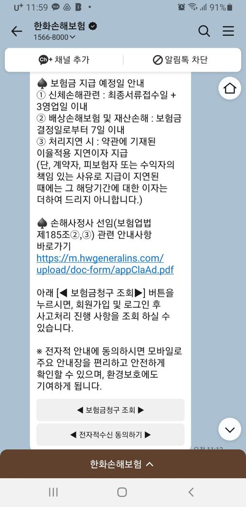 보지 못했을 수도 있습니다. 10일날 전화하셔서 추가서류 보냈으니 검토 다시 해달라고 하시면 됩니다. 그리고 문자는 보험금청구한 사람들에게 모두 보내는 것으로 보입니다.