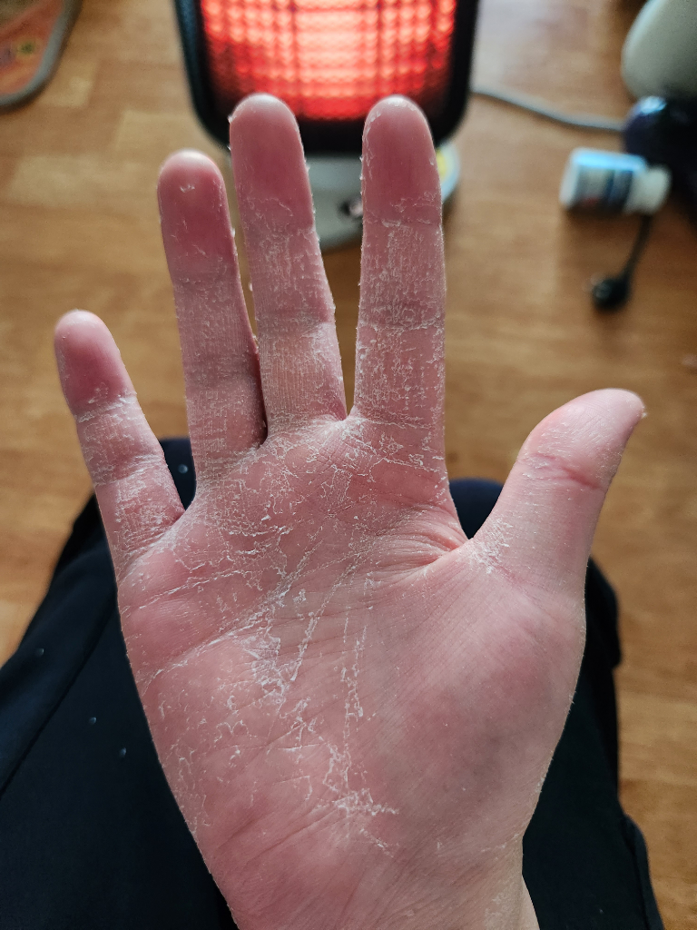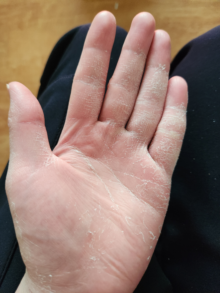 물과 의 접촉을 줄이시고 피부 보습에 신경 쓰시며 피부과 진찰을 받으시기 바랍니다.