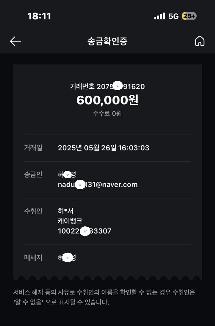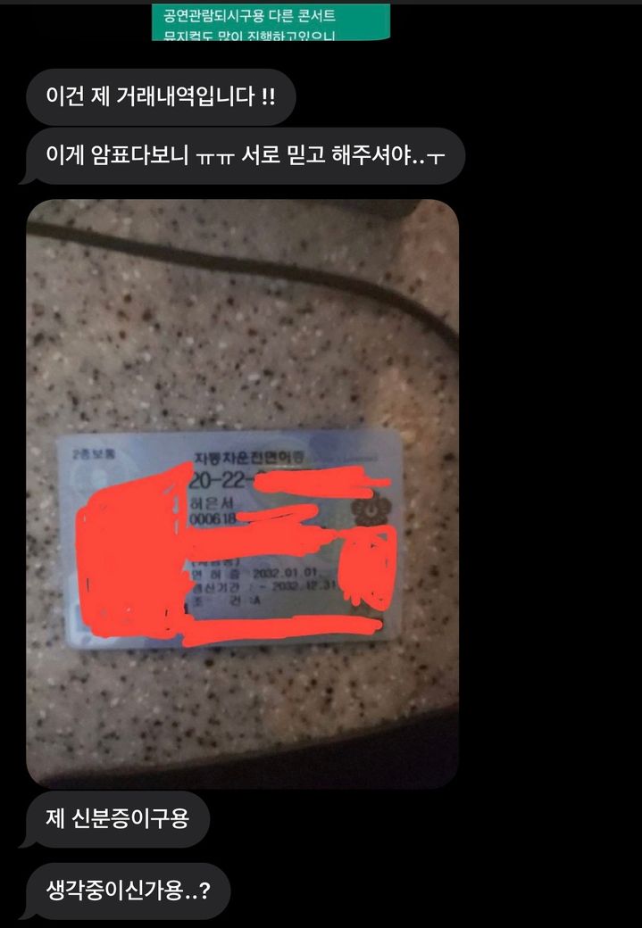 번개장터 암표 사기를 당해 2025년 5월 26일에 상대방 계좌(케이뱅크 10022693****, 예금주 허*서)로 60만 원을 송금했습니다. 송금 후부터 표에 문제가 생겨 60만원을 더 입금해주면 기존 거 환불을 해주고 다시 표를 끊어주겠다 하였지만 의심스러워서 기존 거 돌려주시면 다시 입금하겠다 하였습니다 그러고나서 갑자기 연락이 두절되었고, 현재까지 아무런 연락도 받지 못했습니다. 대화내용, 계좌번호, 신분증 앞자리, 번개장터 닉네임, 전화번호 정도만 아는 상태입니다