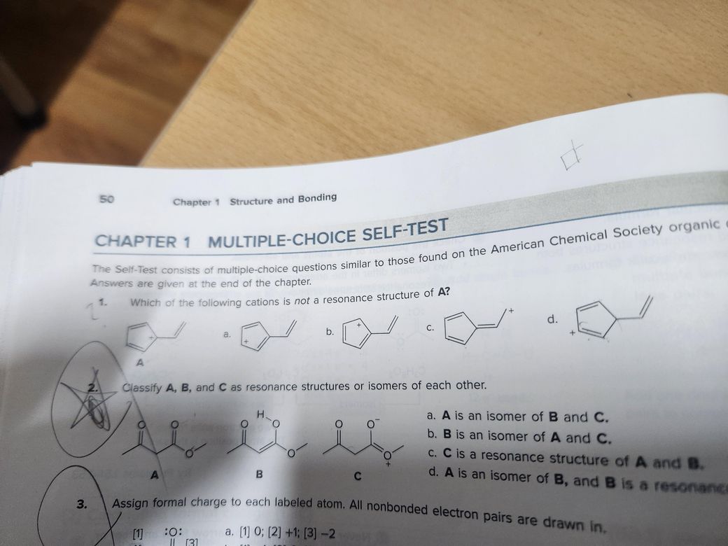1번 답이 d인데 답이 없는거 아닌가요? 링만봐도 A에서 수소가 4개이고 d에서 수소가 4개인데 그러면 공명구조 맞잖아요. 혹시 제가 +부분을 잘못카운팅 한건가요?