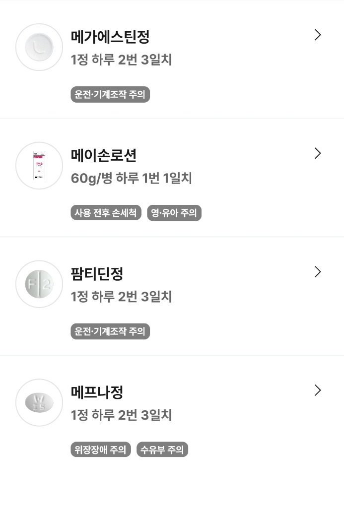 3일치 정도는 큰 문제가 되지 않으실 겁니다. 두드러기 완화를 위한 메가에스틴은 소화기관계 부작용이 적은 편이며, 추가적으로 장약들이 장을 보호해주기 위해 들어가 있습니다.