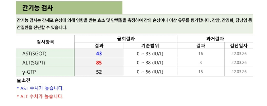 이렇게 간수치 높다고 나와서 소화기 내과 가서