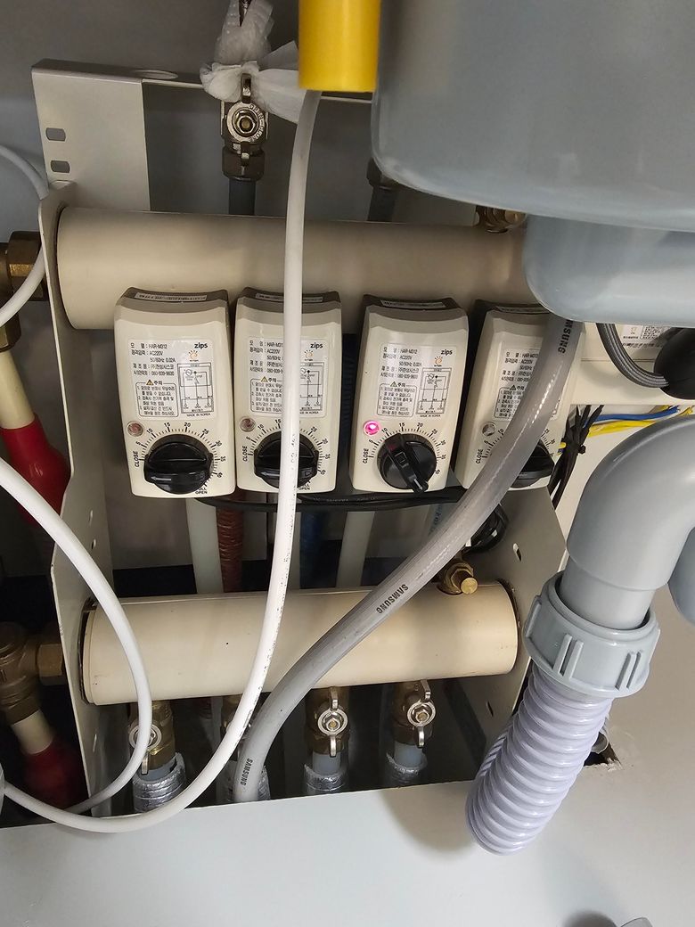 온수분배기는 온수를 각 방이나 구역으로 나누어 공급하는 장치입니다. 빨간불과 기계음은 과열, 누수, 고장 등의 문제를 나타낼 수 있습니다. 장치를 끄면 온수 공급에 문제가 생길 수 있으니, 무리하게 끄지 말고 관리사나 전문가를 통해 점검받는 것이 안전합니다.
