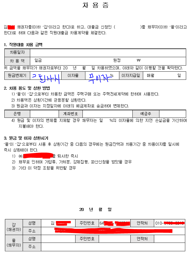 3. 변제기가 00회사 퇴사시, 이자율 무이자가 효력있는지도 궁금합니다.