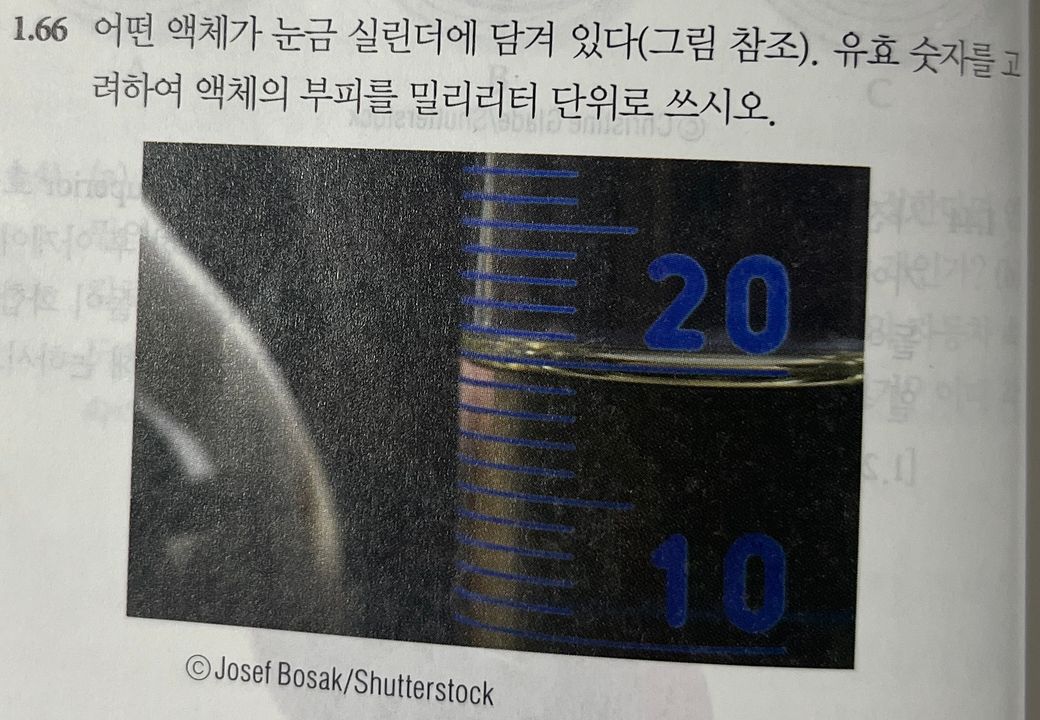 액체가 20까지 차있는 거 맞나요...?그리고 이 상황에 유효 숫자는 어떻게 알아내나요?