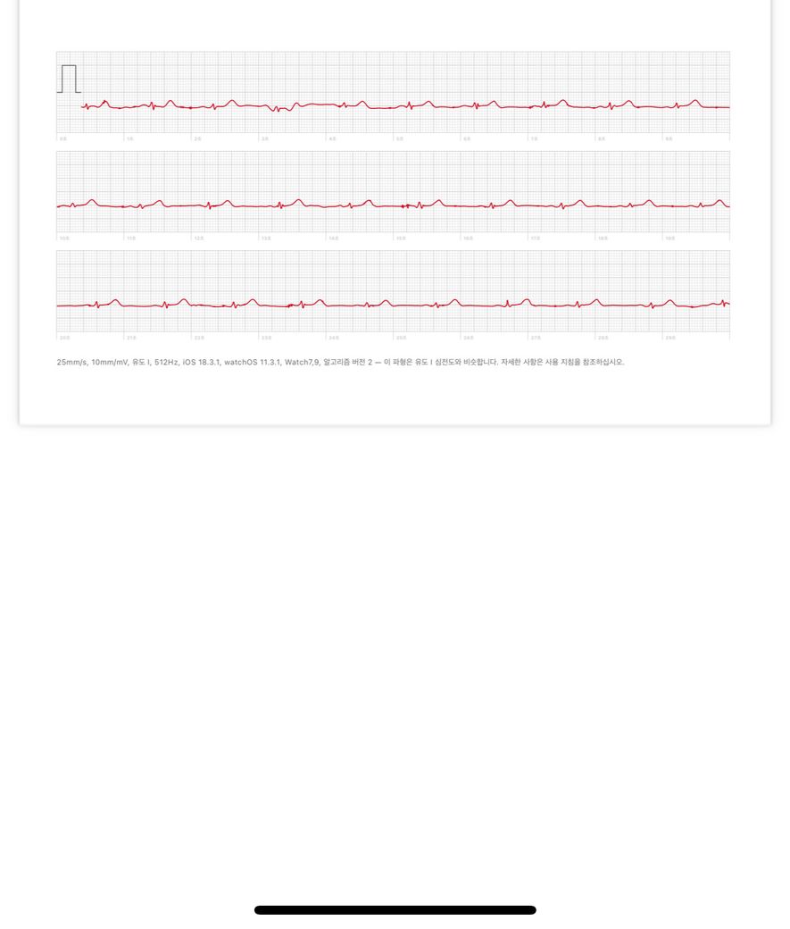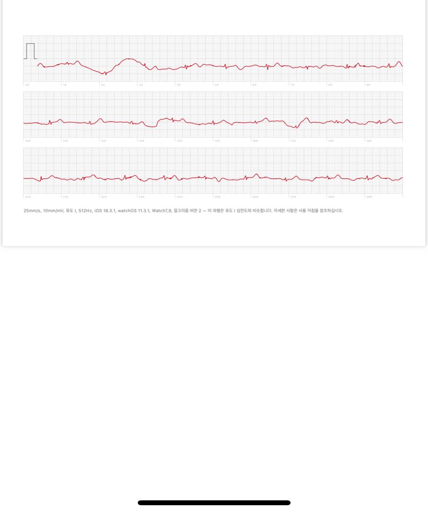 첫번째 장은 그래서 심전도가 많이 흔들렸고 세번째 장애 보면 심전도가 잘 찍혔고 심방세동도 없고 조기수축도 없는 완전 정상 심전도입니다.