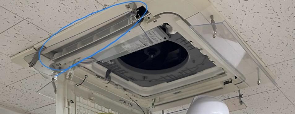 학교 냉난방기 테두리의 파란 동그라미 친 부분에서는 에어컨 바람만 나오고 난방 시에는 항상 닫겨 있나요?