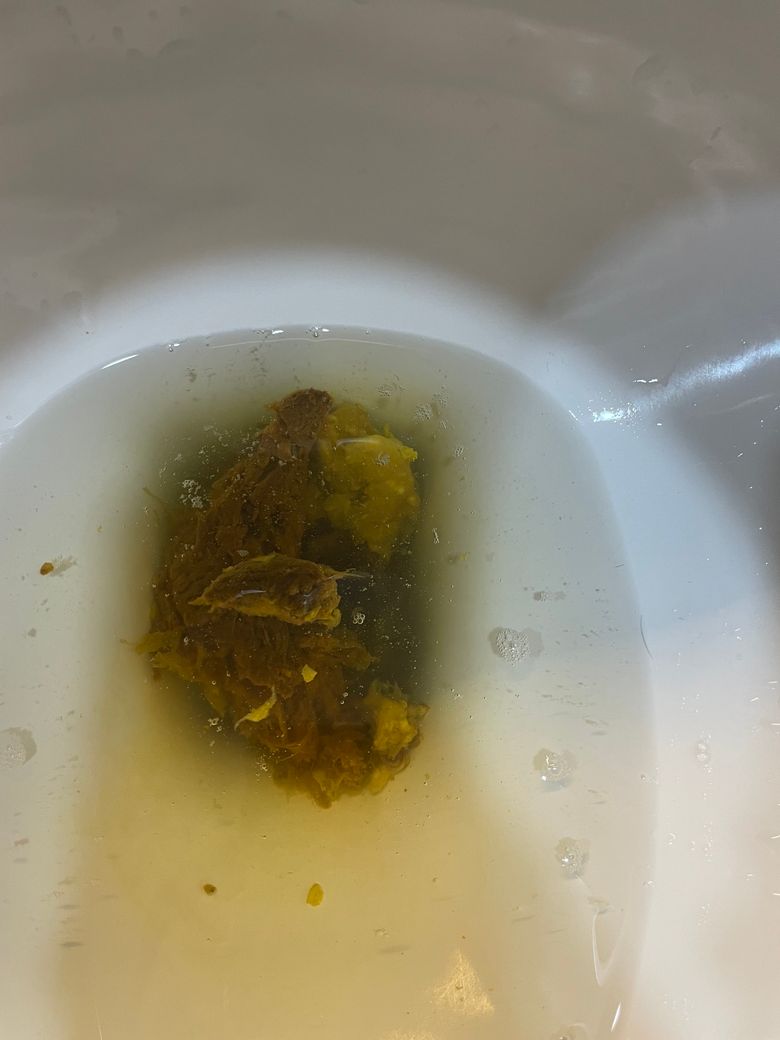 변 이 하얀 변이랑 섞여나왔는데 상태봐주세요 (변사진주의)