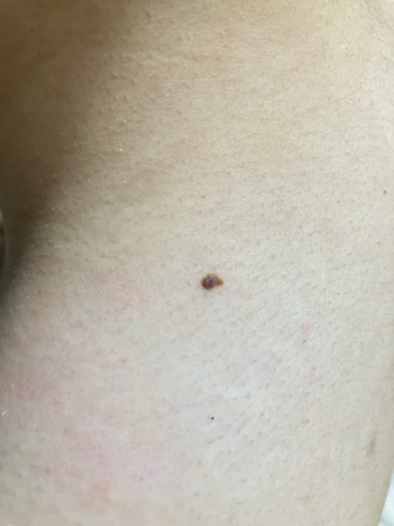 사진으로만으로는 정확히 알 수 없지만, 육안으로 보기에는 걱정할 수준은 아닌 것 같습니다. 하지만 혹시라도 걱정이 된다면 피부과에서 진료를 받아보시기 바랍니다.