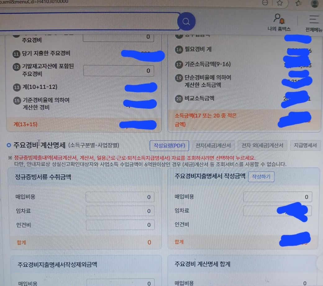 사업장별로 주요경비 계산명세를 작성하여야 하기 떄문에, 임차료가 발생한 사업장의 주요경비 계산명세에 기재하시면 됩니다.