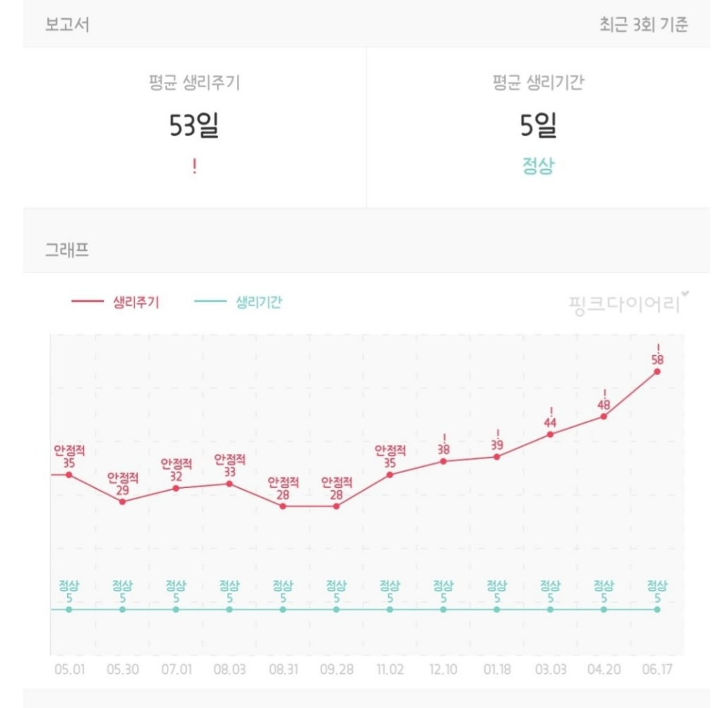 생리의 주기, 양, 기간 등의 요인은 몸의 컨디션에 따라서 변화가 있을 수 있지만 그 정도가 많이 심하신 상태인 것 같습니다. 호르몬 이상이 있을 가능성이 있으므로 이전에 받은 검사에서 이상이 없으셨더라도 산부인과에서 재차 정밀 검사를 통해서 문제가 있는지 확인해보시는 것이 좋겠습니다.