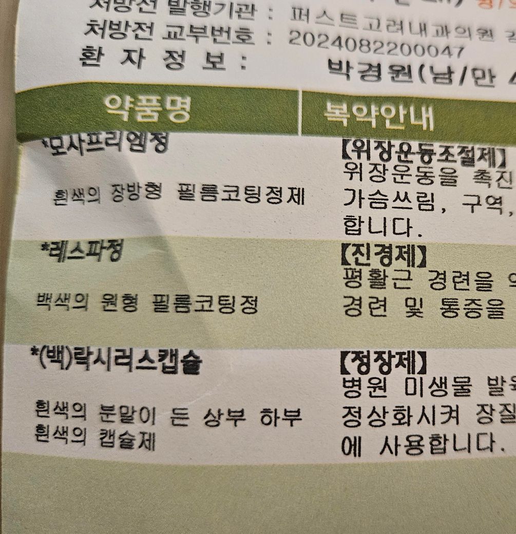 모두 함께 복용하고 싶다면 적어도 모사프리엠정과 레보프랑정 중 한 가지만 복용하시기 바랍니다.