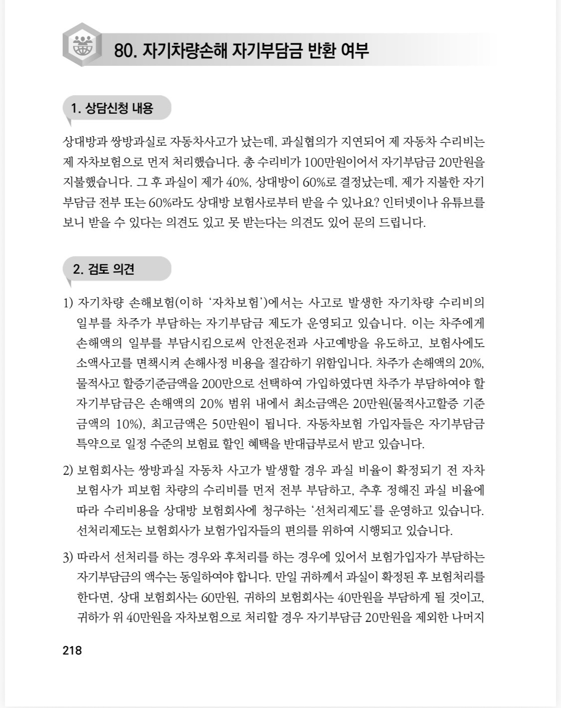 1. 상대방이 질문자측에 일부 과실을 주장하는 경우라면 상대방의 주장을 받아들여 처리를 하거나,