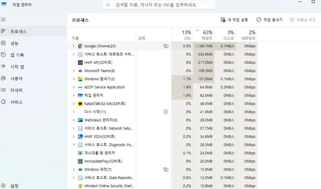 크롬 탭이 몇개 안켜져있어도 30몇개 20몇개 이런식으로 저 크롬이 용량을 많이 잡아먹는거같은데요