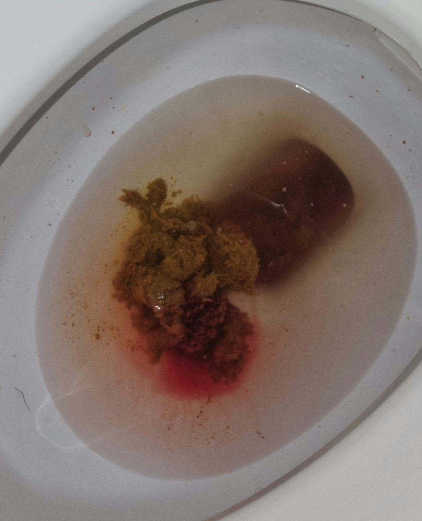 혈변의 색으로 봤을때는 내장에서의 출혈은 아닌것으로 보이고 항문주변부 출혈일 가능성이 있어보입니다.