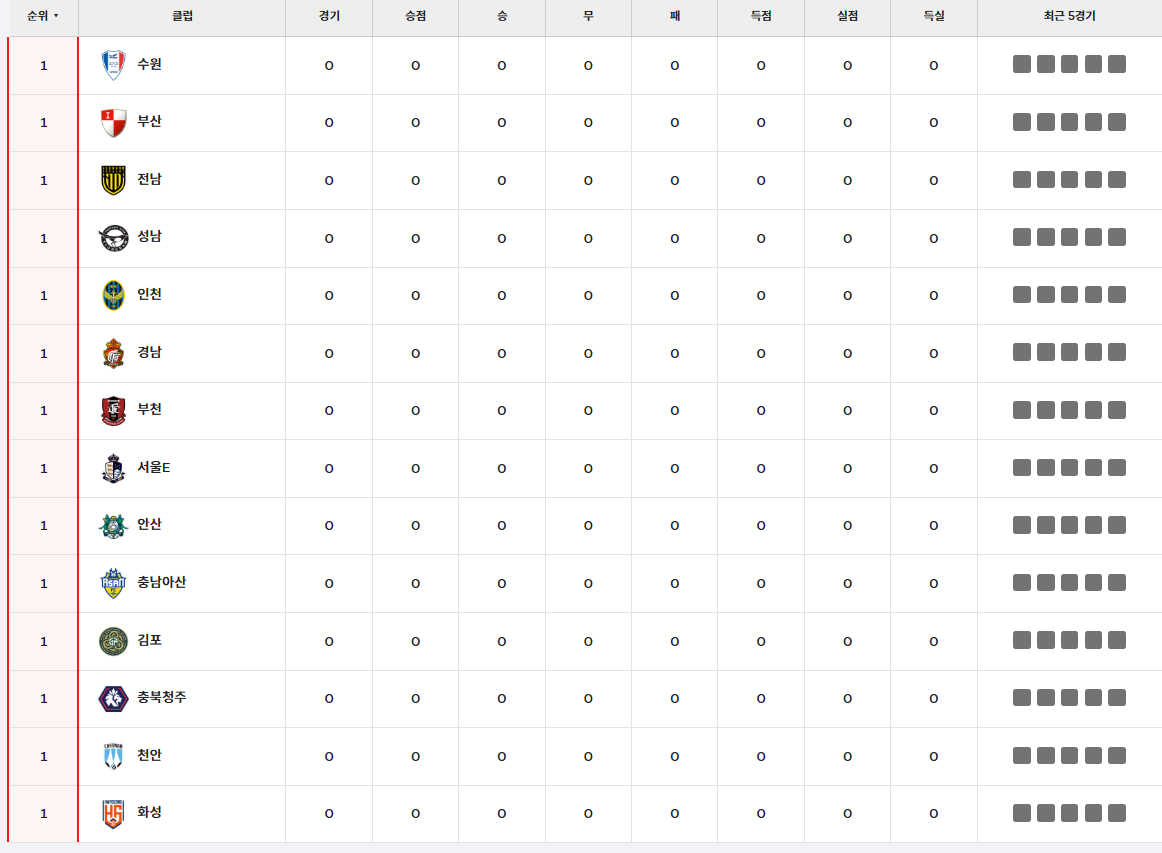K리그2는 2024시즌까지는 13개 팀으로 구성되어