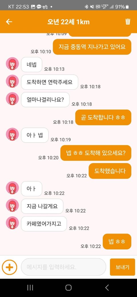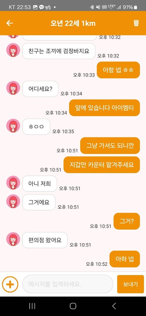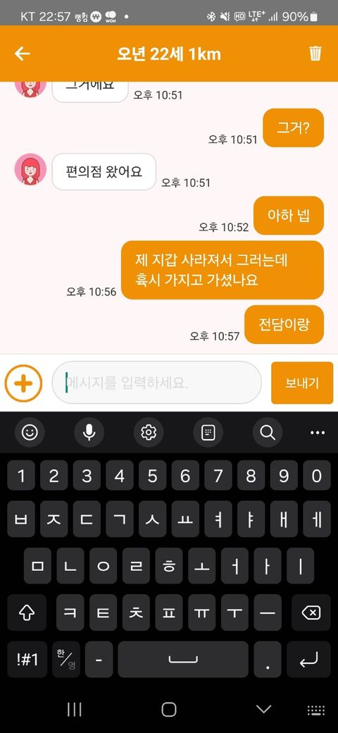 대화 내용은 어디 사냐 부천산다고? 나도 거기 사는데 이정도가 다 였습니다.
