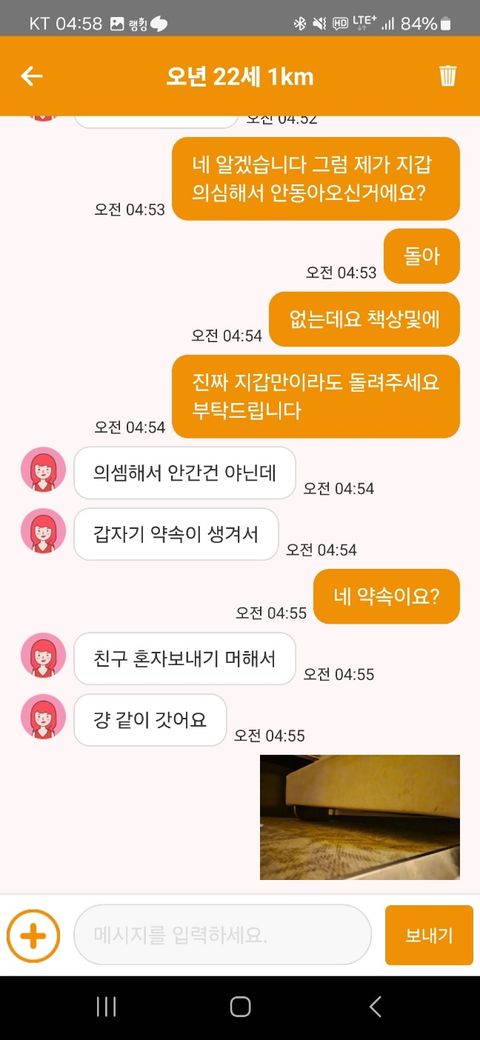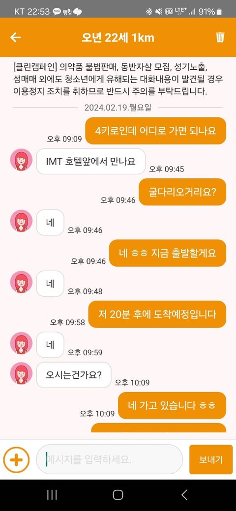 상대방 측은 랜덤채팅에서 2대1(22세)로 즐기자고 하였고