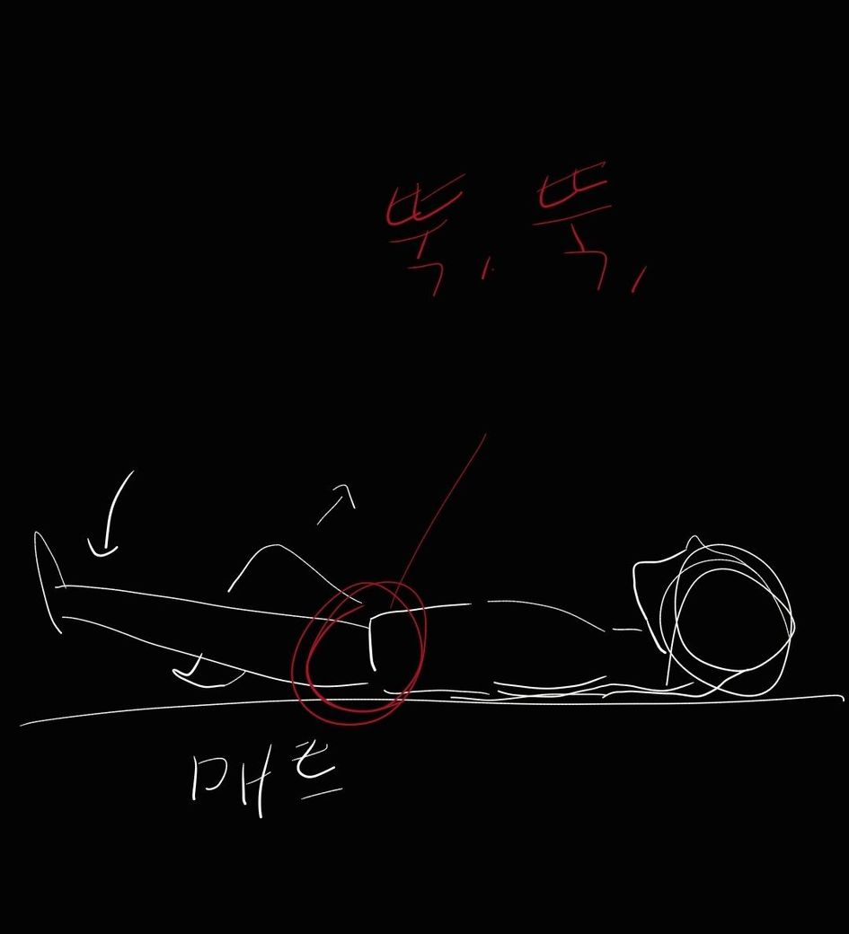 매트 깔고 운동을 하고 있었는데요 아래 사진과 같이 이런 운동을 하면 꼭 오른쪽 골반에서만 뚝. 뚝 소리가 납니다. (사진은 왼쪽 골반으로 그려버렸군요.)