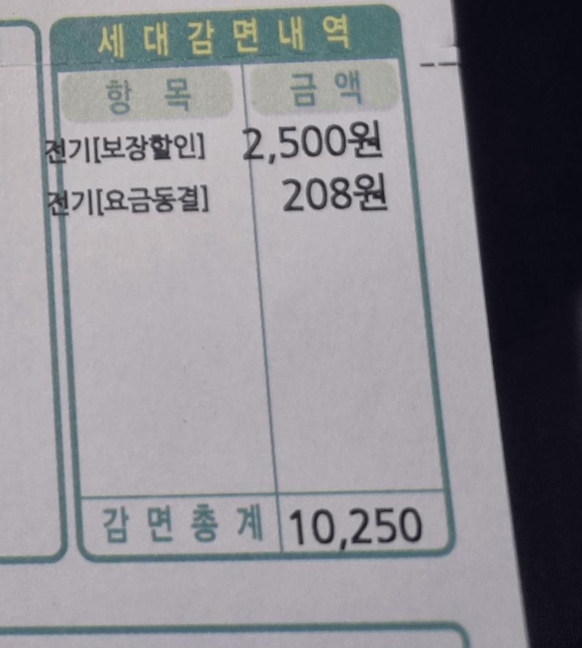 주거급여수급자의 경우는 최대 월 10000원인데요. 여기에 추가된 마일리지등을 포함해서 10250원 공제받으신듯 한데 총계가 할인금액이 맞습니다.