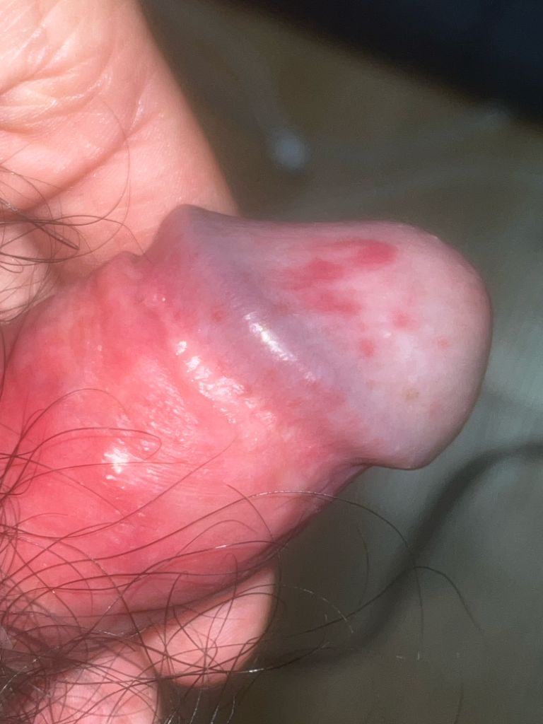 밤 사이에 성기를 좀 긁은 것 같은데 아침에 일어나보니 저렇게 빨갛게 되어있고 살짝 간지럽네요 귀두포피염 인가요?? 아님 단순 긁음에 의한 마찰인가요ㅠㅠ제가 성기 습진으로 좀 긁습니다