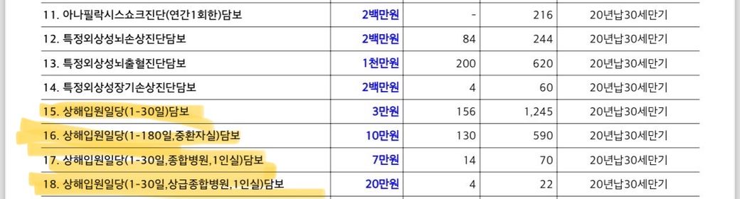 상해 입원일당이 너무 과하게... 구성되어 있습니다.