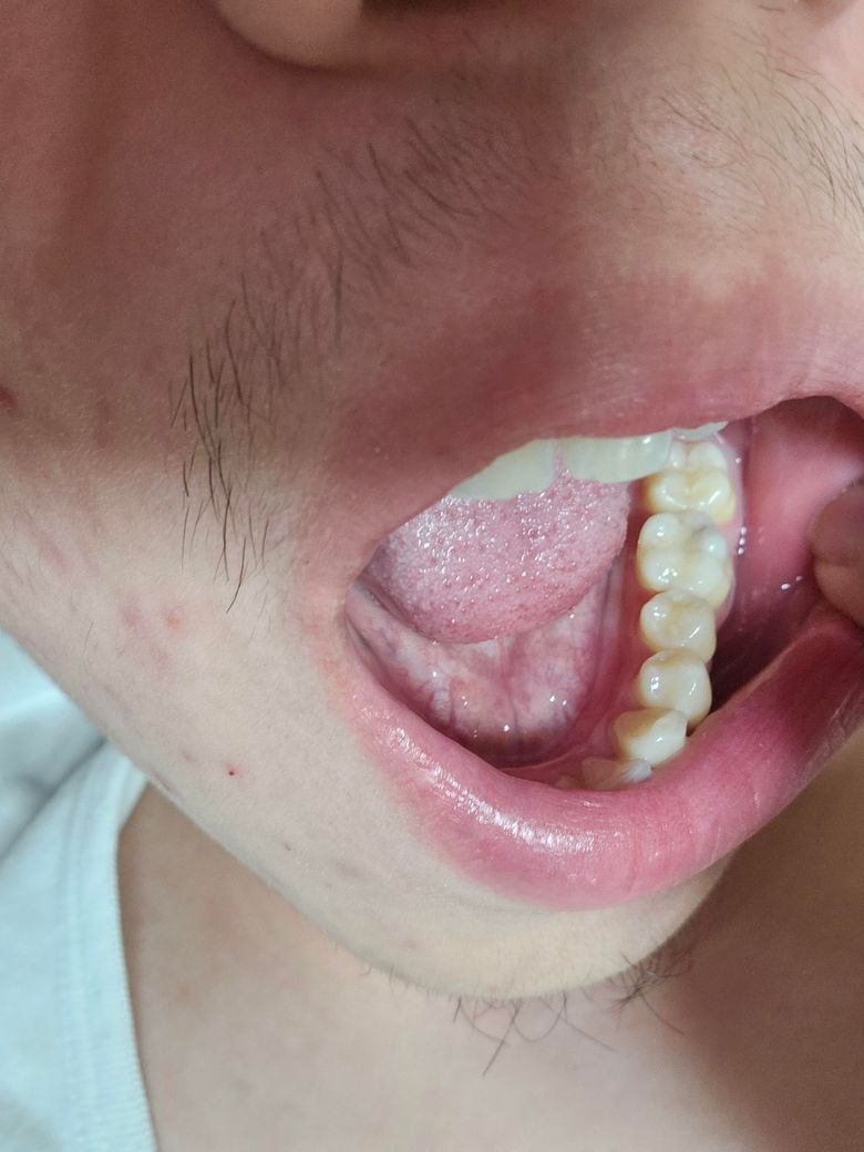 혹시 이를 꽉 깨물고 자서 생긴 치아 변색일 수도 있나요? 그리고 끝에서 2번째 어금니는 떼우지 않은 자연치아 입니다