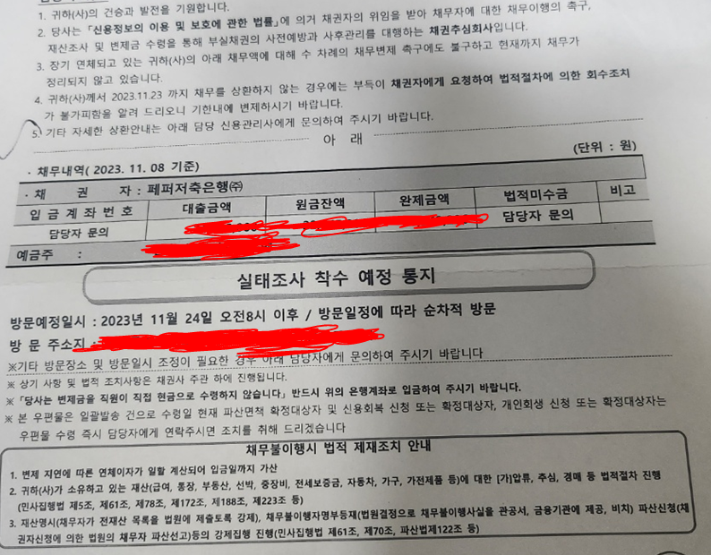 빚 독촉이 계속 오는데 오늘은 집에 이게 날아왔습니다