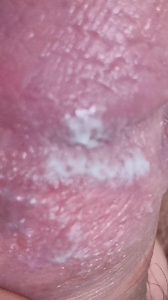 성기에 흰색의 삼출물이 관찰되어 성기의 피부염이나 염증 반응 가능성을 고려해야 합니다. 성관계를 한 적이 없다면 사실상 성병의 가능성은 없다고 보이며 헤르페스나 곤지름 감염에서 보이는 수포성 병변이나 사마귀양 병변이 아니므로 가능성은 낮습니다. 상기 병변이 지속된다면 성기의 피부 질환에 대한 감별 진단과 치료가 필요하므로 비뇨의학과 진료를 보시는 것을 권해드립니다.