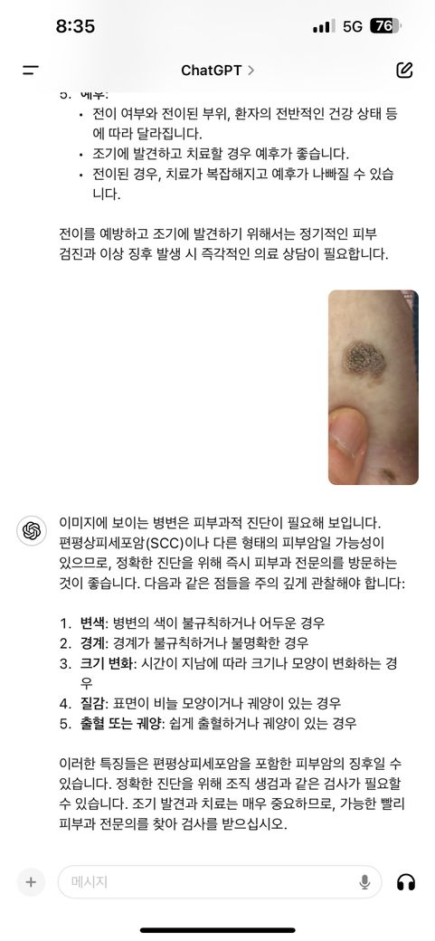 AI에 사진을 올렸더니 편평상피세포암일수 있다고