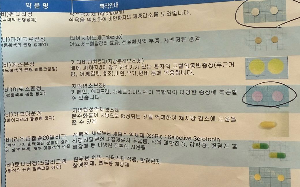 사진에 보이는 처방 약 중 식욕억제제(펜디라정)만 제외하고 복용해도 괜찮을까요?? 그리고 운전하거나 자는데 문제가 없을까요??