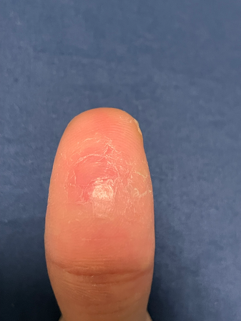 몇년 전에도 가끔씩 이런적이 있었습니다. 제가 피부가 약하기도 하고 목이랑 팔에는 아토피가 있어서 아토피인가 싶기도 했습니다. 건조하게 껍질이 일어나기 시작하더니 점점 뜯겨서 안족 피부가 드러나서 닿거나 쓸리면 통증이 있습니다. 특별히 피부에 해가 될만한 약물과 같은 것들을 만진 기억은 없는데, 손 다른 부위에는 그렇지 않은데 유독 엄지 손가락 이 부위에만 이렇게 되었네요. 아토피인가 싶어 평소 사용하던 스테로이드제 아토피약을 발라보기도 했는데 나아질 기미가 안보입니다. 원인이 뭘까요?