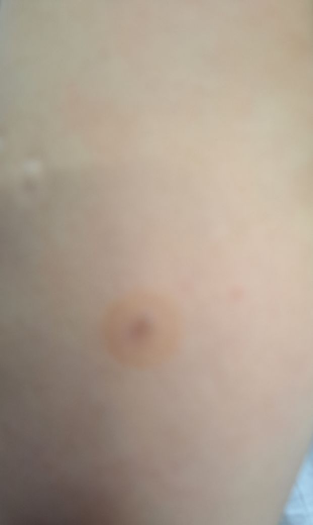 팔뚝 중앙에 붉은색. 뭔가가 있는데 만지면 아프고 안에 뭐가 있는듯하고 밖으로 튀어나오지는 않았습니다. 흰색은 초딩때 맞은 불주사 자리이고 붉은색 정체가 궁금합니다.