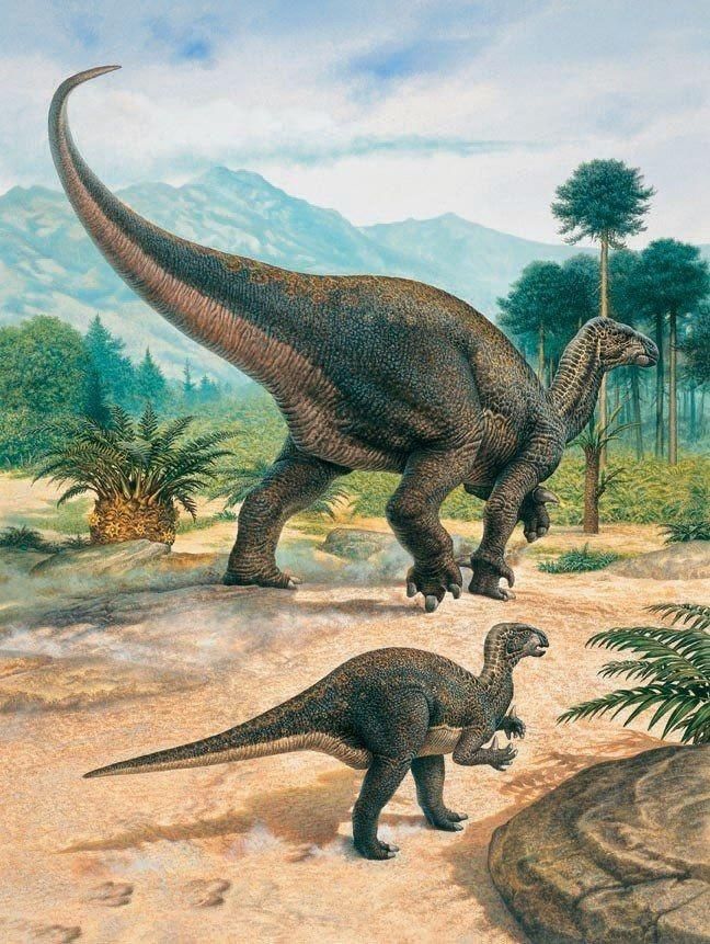 옛날에는 조각류 공룡의 복원도가 두 다리로 걷는 모습으로 많이 그려졌던 것은 초기 공룡 연구에서 수각류 공룡과 유사하게 생각하는 경향이 있었기 때문입니다. 특히 작고 민첩해 보이는 초기 조각류 공룡의 화석의 영향이 컸었습니다.