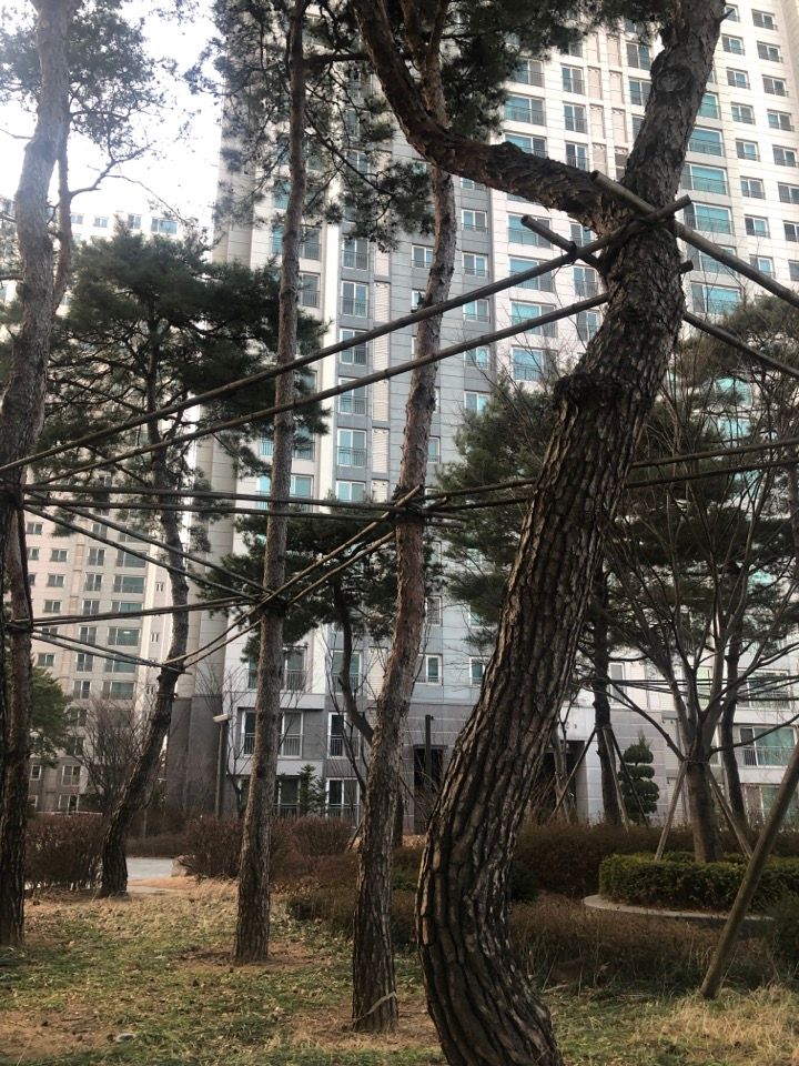 처가에 놀러갔는데요. 애들 놀이터 간다고 해서 나와서 놀이터 가는데,,,사진과 같이 소나무를 연결해 놯드라고요. 사진과 같이 소나무는 왜 저렇게 연결해 놯을까요??