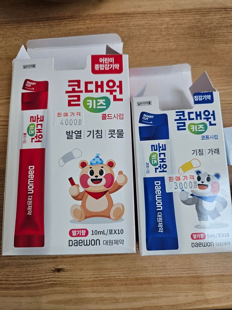 기침 콧물 증상 있으면 콜대원 빨강or 파랑 같이 먹여도 됩니다