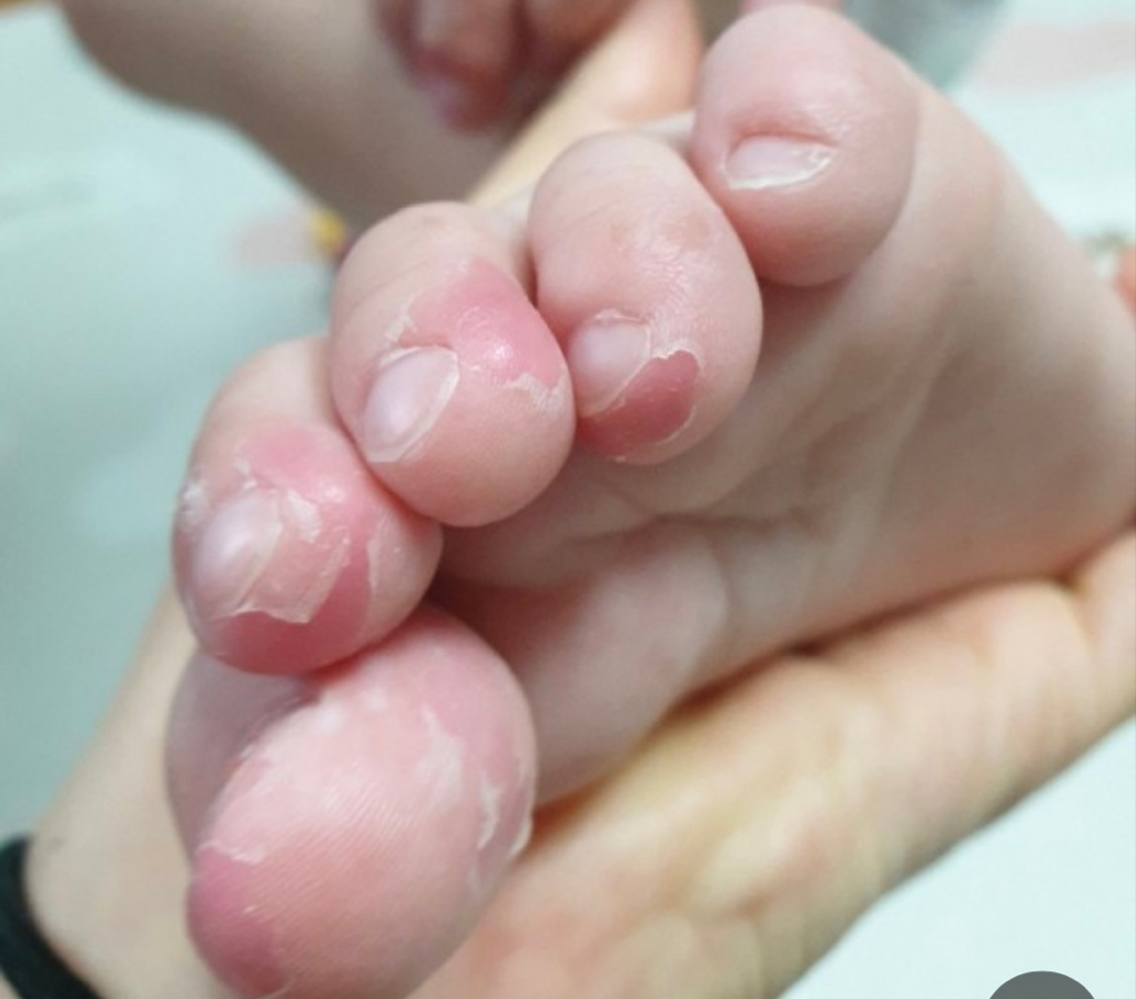 그리고 작년 10월부터 갑자기 뒤꿈치는 각질,갈라짐이 생기고 나중엔 손톱발톱쪽 앞부분이 살이 일어나더니 이제는 사진처럼 저렇게 살이벗겨져요 안때고 놔두면 건조해져서 마르는거처럼? 그래서 결국 때어내고 반복하고있어요ㅠ 무좀인지궁금해요 약국에서 각화형무좀에 뿌리는약을 2개월정도발랐는데도 증상은 똑같더라구요 어디병원을 가야하나요?ㅠ