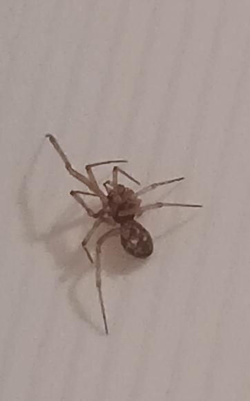 안녕하세요. 박창민 수의사입니다. 사진이 흐려서 정확하지는 않지만, 별무늬꼬마거미 같습니다. 갈색 머리를 가진 작은 거미이며 유백색 잔물결이 있는 둥근 복부가 특징입니다. 감사합니다.