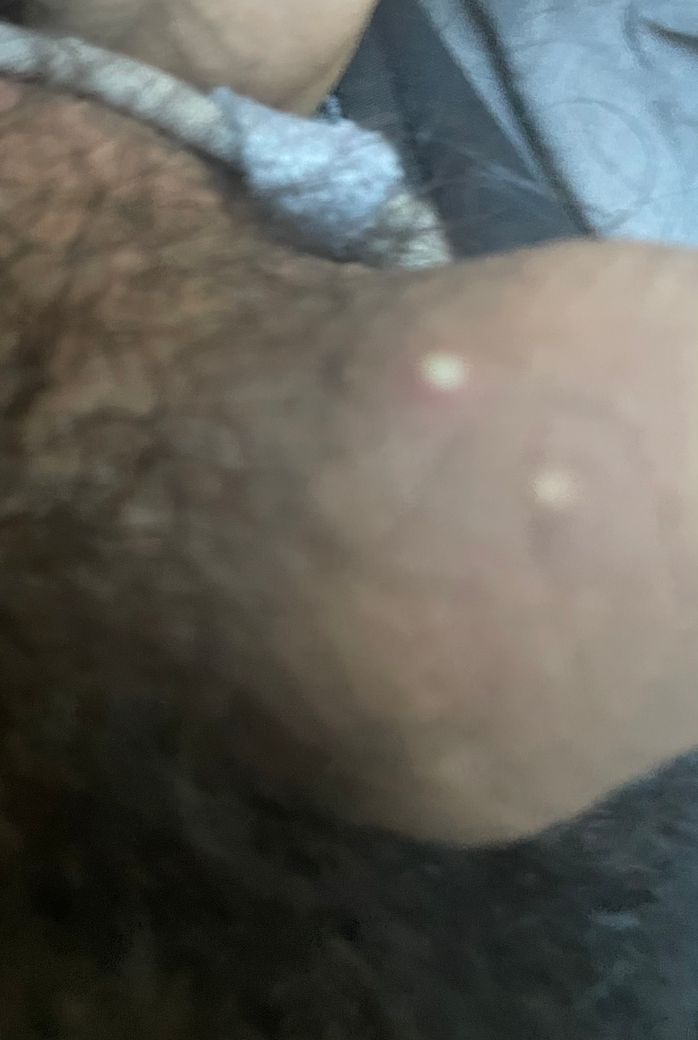 현재로서는 모낭염과 곤지름과 같은 성병을 감별할 필요가 있어 보입니다. 피부과나 비뇨기과에 내원하시어 진료를 받아보시는 것이 좋겠습니다.