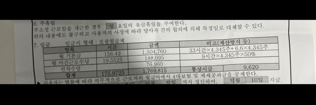 그런데 월 기본급 시수는 156시간으로 기재되어 있는데