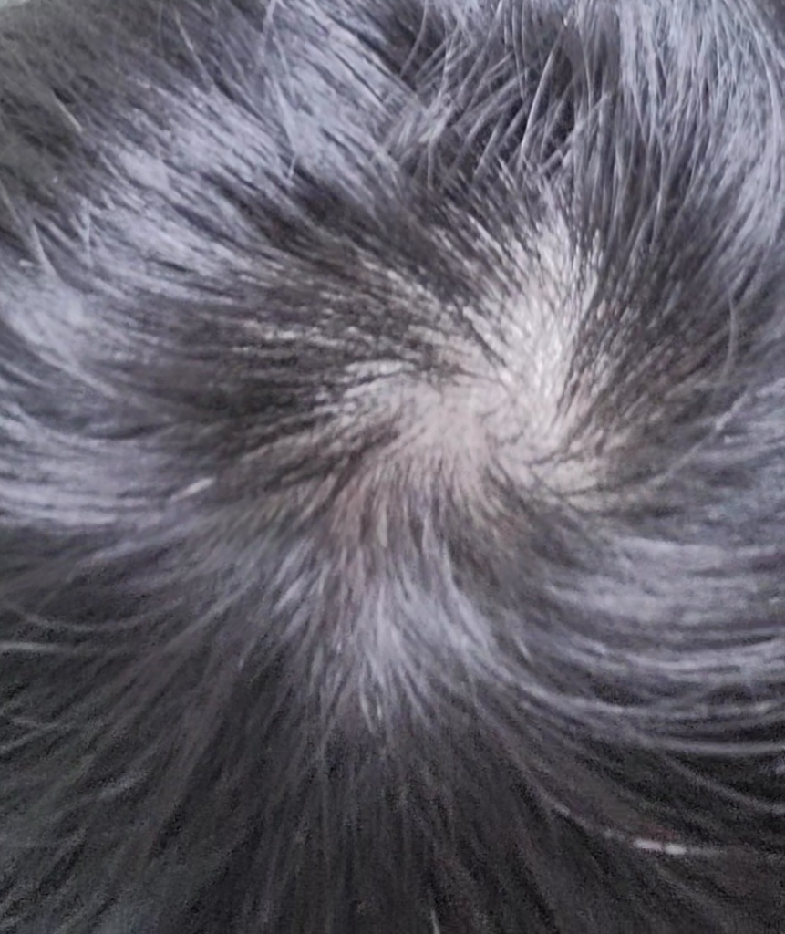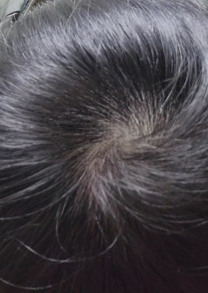 현재 정수리 상태는 탈모로 보이지는 않습니다.