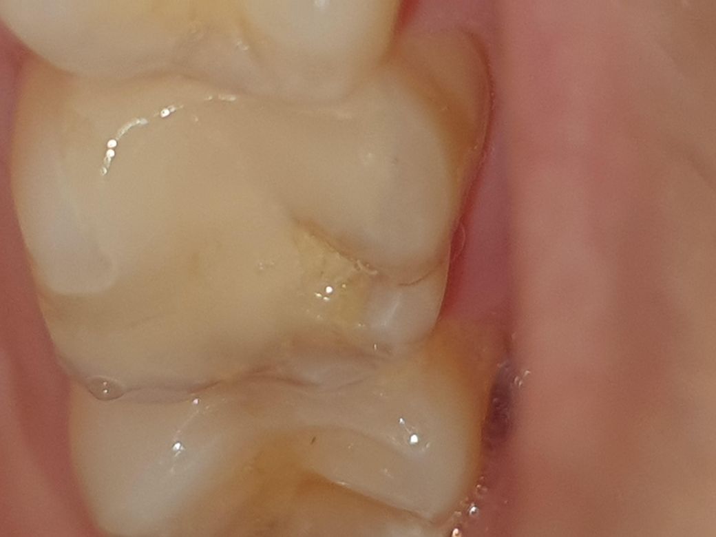 사진상에는 잘 보이지않지만 치아끼리 맞부딪치는 겉면이 깨져서 혀로 흝어보면 구멍이 뚫려있습니다